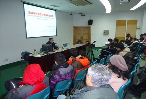 1月10日下午,澳门正规电子游戏平台庞好农教授在宝山校区J101做了"趣谈中外姓氏习俗与称谓文化"的讲座,澳门正规电子游戏平台、钱伟长学院、社区学院、通讯学院和美术学院等单位的师生聆听了本次讲座。