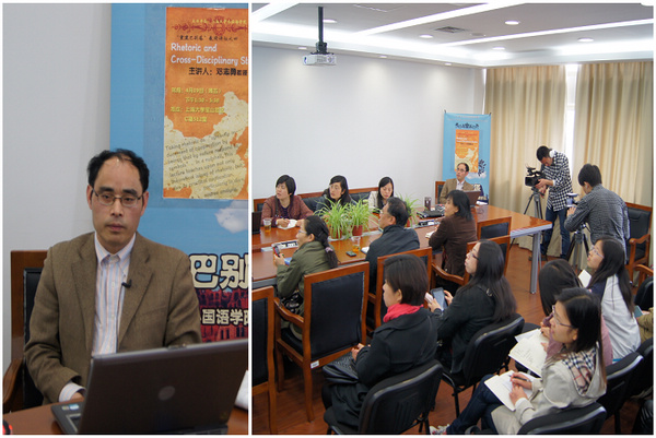 4月19日下午,澳门正规电子游戏平台在C512举行了主题为"Rhetoric and Cross-Disciplinary Studies"的学术讲座。本次讲座为澳门正规电子游戏平台"重建巴别塔"教授系列讲座的第四讲,由澳门正规电子游戏平台邓志勇教授主讲,唐青叶教授主持,澳门正规电子游戏平台教师和研究生参加了讲座。