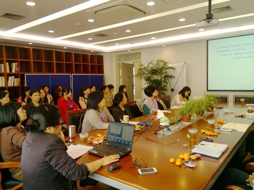 11月8日下午,澳门正规电子游戏平台语言学及应用语言学沙龙在C五楼会议室举办讲座,梅文胜博士主讲"英语语用标记语'I mean'在母语和非母语对话中的使用:一个基于语料库的对比研究"。讲座由澳门正规电子游戏平台唐青叶教授主持,学院领导、相关专业教师和专业外语研究生参加了讲座。