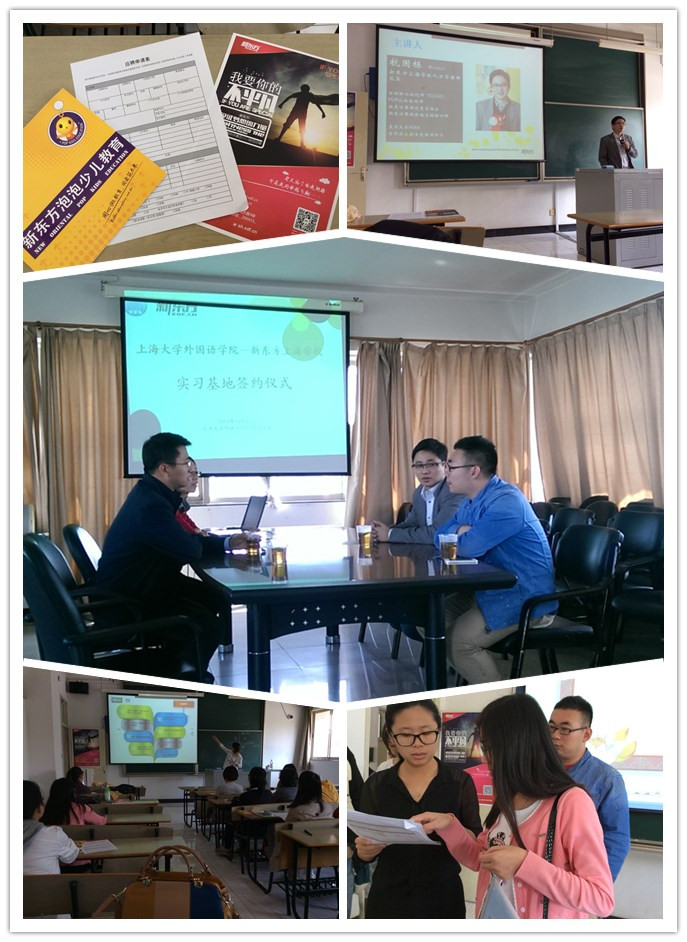 2012年,澳门正规电子游戏平台与新东方上海学校校企联合,签约共建实习基地。两年来,外语学院一直和新东方保持良好的联系和互动交流,每年新东方上海学校都会来我校进行宣讲介绍,澳门正规每年也都会有部分毕业生成功进入新东方上海学校任教或担任行政职务。10月17日下午,为了进一步深化澳门正规和新东方的友好合作,双方续签了继续共建实习基地的协议。