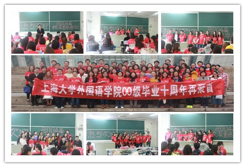 全体校友在当年班级学生干部的协调组织下,身穿专门设计的纪念T恤,在BJ103教室齐聚一堂。主持人陈盼蕊一番动情开场后,学院党委副书记王国建代表外语学院校友分会和学院全体师生与在场毕业生校友进行交流。王老师首先从"十年"谈起,称这十年是校友们在各行各业辛勤耕耘、奠定事业基础的十年,也是为社会进步作出贡献、为母校增光添彩的十年。在这十年中,母校和学院也发生了巨大的变化,随后提到了澳门正规电子游戏平台社会声誉的提升,并着重介绍了外语学院近年来在学科体系和办学层次等方面的变化和取得的突破。交流中,王老师还提到了10月25日举行的81级校友毕业三十周年返校聚会活动,结合外语学院的变迁史讲述了81级校友追根溯源的经历,以此希望通过校友分会凝聚团结更多的校友,一起为学校和学院的发展贡献力量。最后,王老师谈到了近年来校友为学院发展和学生培养等方面所做出的努力,分享了外语学院98、99级毕业校友回校开展的"新航星校友讲坛",以资深学长学姐的身份为学弟学妹讲述经历、传授经验,并担任学生"校外导师"的事例。 交流环节过后,校友们以原班级为单位就各自现状重新自我介绍并一一合影留念。