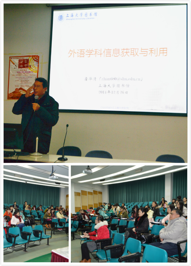 詹华清老师的讲座从五个方面展开,首先他介绍了文献信息的资源类型包括学术文献信息资源类型和文献信息传播主体。接下来,詹老师介绍了外语学科的信息源:图书、期刊、会议文献、报纸、学位论文、整合检索系统、其他专业数据库、专业学/协会。澳门正规电子游戏平台图书馆馆藏纸质图书370多万册,电子图书160多万种,仅"超星数字图书馆"就包含150多万种,此外还有"读秀"、"新华e店"等在线资源。澳门正规电子游戏平台图书馆购买的期刊数据库有"中国知网""维普期刊资源整合平台"、"万方数据知识服务平台"、"读秀学术搜索"、"EBSCO"、"Science Direct"、"MUSE"、"DOAJ"等。詹老师还介绍了中外核心期刊查询系统—ExLibris和核心期刊目录。在图书馆服务篇中,詹老师讲解了资源访问方式、VPN代理服务、数据库导航、馆际互借与文献传递和图书馆外资。谈到网络资源与搜索引擎,我们了解到除了百度、谷歌之外,还有Lycos、 Ask Geeves、 Excite等优秀的搜索引擎。最后,詹老师说,开启知识大门的真正钥匙不是信息本身,而是信息素养。