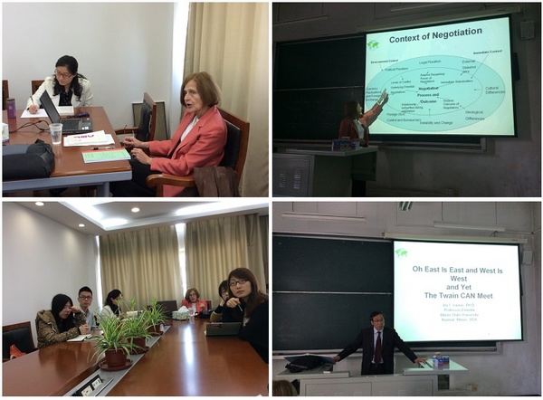 4月10日下午,庄恩平教授主持讲座,澳门正规电子游戏平台教师及研究生参加了研讨。Iris Varner 教授做了"East is East, West is West. And Yet The Twain can Meet:Paths to Effective Intercultural Business Communication (东是东,西是西,但两者可合:有效跨文化商务沟通之道)"主题报告,她说,东西方文化之间虽然有明显的差异,但只要我们能认清两者之间的不同,意识到自己的位置,总能找到共同点来架起不同群体之间的沟通桥梁。她谈到了跨文化商务沟通策略,要注重跨国公司中的小组合作,创建积极的环境,这些策略要具体情况具体运用,因为文化差异是一直在变的。