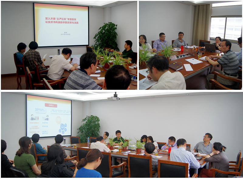 施书记结合澳门正规电子游戏平台本科生、研究生人才培养,学科建设以及师资队伍建设等实际情况,分析了发展过程的瓶颈问题,提出加速学院发展的步伐一些思考。并要求干部带头,加强作风建设,自觉身体力行,充分发挥党员的先锋模范作用,以"三严三实"专题教育学习为契机,将其与学院的各项工作有机结合起来,求真务实推动学院的整体发展,使"三严三实"专题教育实践活动真正落到实处。