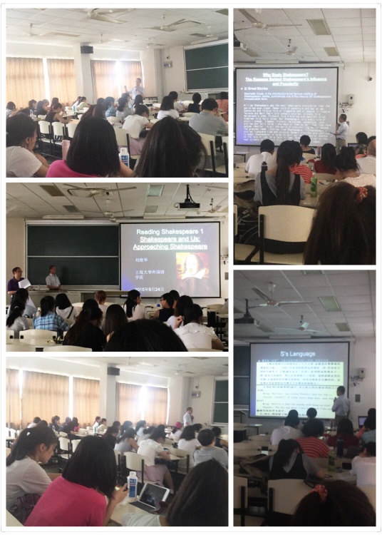 6月24日下午1:30,澳门正规电子游戏平台"走近莎翁步入经典——莎士比亚文学中的人生与美学系列讲座" 第一讲:莎翁与我们—走进莎士比亚在CJ304顺利举行。此次讲座由外语学院副院长邓志勇教授主持,外院近百名学生和老师到场聆听。来自宁波大学的刘继华博士在短短的一个半小时内为大家呈现了一场丰富的文化盛宴。