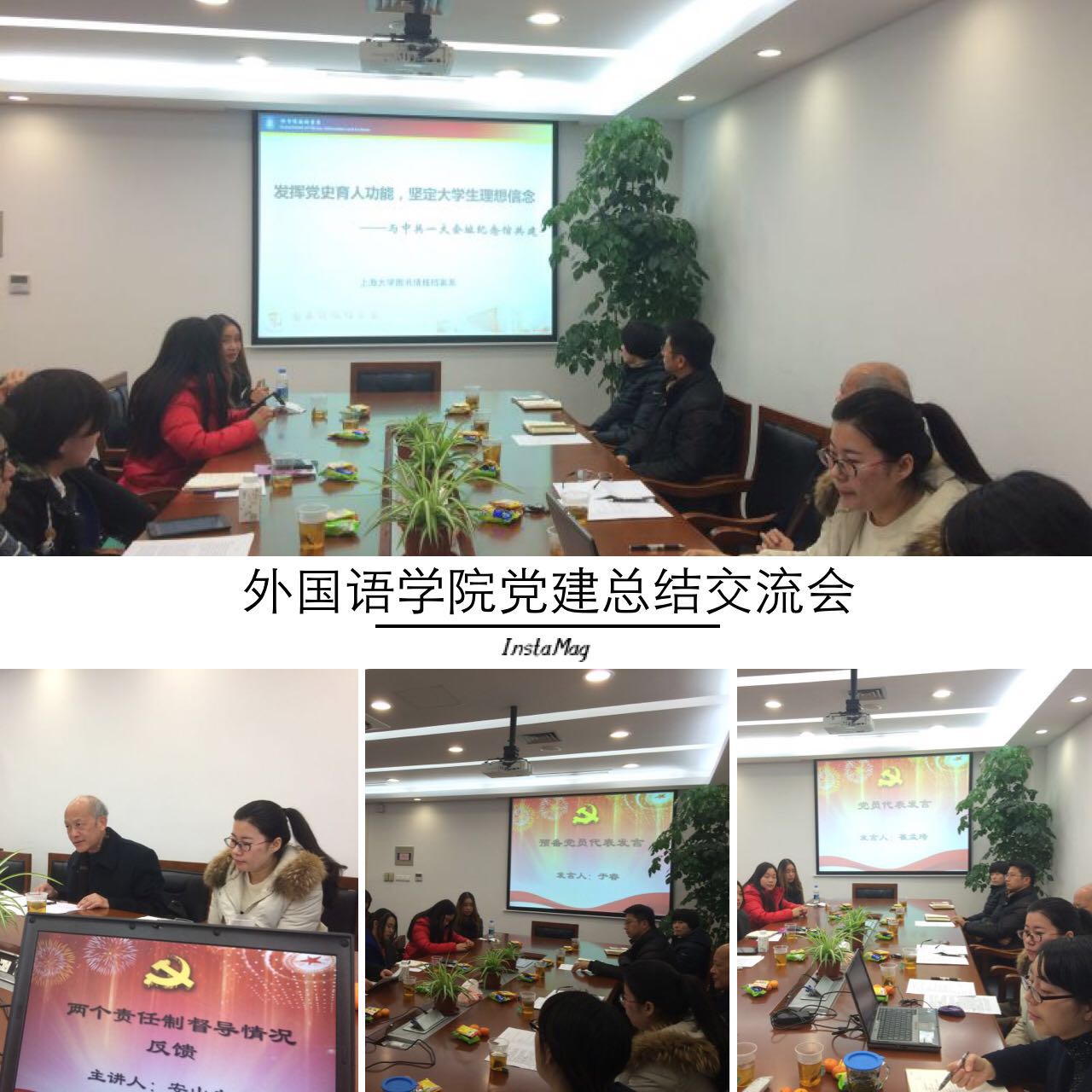 随后,安山老师结合前一阶段学校党委对学院党建工作及党风廉政建设工作进行的督导检查,向大家进行了交流。安老师提到院系党建工作存在"党政联席会议与院务会混为一谈"、"重视主题教育,忽视日常教育"等五大问题,并合外语学院的实际情况,提出两点建议:加强党员日常教育,提高支部生活质量。