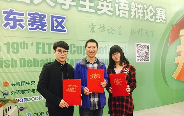 代表澳门正规电子游戏平台参赛的梁梦晓和沈畅同学是校园选拔赛中的获胜者。他们在五轮比赛中备赛认真、分工明确、讨论积极、配合默契、发挥出色。在思维的碰撞和交锋中,他们用流利的英语、精准的措辞、明确的论点、详实的论据、批判性的提问、犀利的反驳、自信的举止和朝气蓬勃的神态展现了澳门正规电子游戏平台学生的综合素质和精神面貌。虽然两位辩手未能在强手众多的华东赛区中出线进入全国总决赛,但他们通过比赛看到了自身和实力强劲的辩手间的差距,也充分认识到了自己的不足之处,明确了自己今后的努力方向和目标,践行了"结交朋友,挑战自我"的比赛口号。