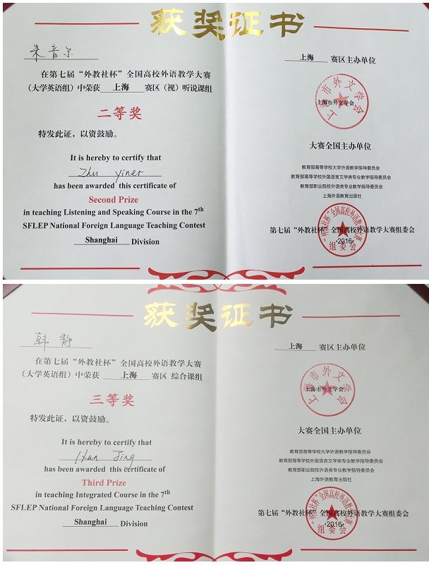 澳门正规电子游戏平台朱音尔与韩静两位青年教师在学院选拔中脱颖而出,分别参加上海赛区听说组和综合组复赛。经过激烈的角逐和比拼,朱音尔博士在复赛授课环节中以精巧的课堂设计、真实灵活的师生活动获得评委好评,以第三名的成绩进入决赛,最终斩获上海赛区听说组二等奖。初涉教坛的韩静博士也向同行们展示了以理念带设计、以设计促互动的优秀课堂,最终荣获综合组三等奖。此次赛果充分体现了外院教师在外语教学中出色的创新理念、灵活熟练的课堂掌控能力和扎实的学科基本功!