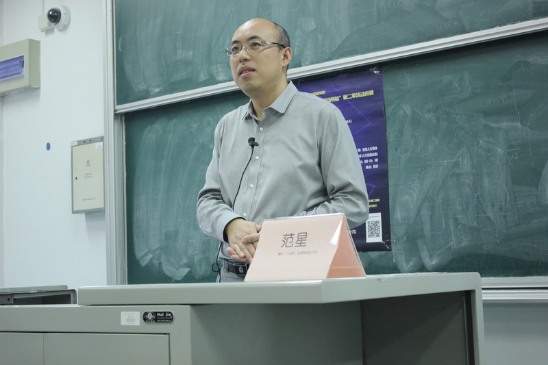 首先,周文佳向同学们介绍了范先生的教育以及职业背景。范先生拥有复旦大学管理学硕士和武汉大学法语文学和经济学双学士学位,在国内国外职场都有着丰富的工作经验。