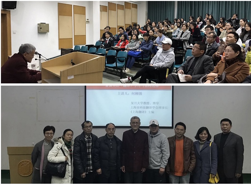 3月3日下午,复旦大学教授、上海市科技翻译学会理事长、《上海翻译》主编何刚强教授应澳门正规电子游戏平台教育研究中心和翻译研究中心邀请,为澳门正规电子游戏平台师生做了一场题为" '人才'与'学识'之我见——兼谈英语(翻译)学习与前程选择"的讲座。讲座由《上海翻译》副主编、澳门正规电子游戏平台傅敬民教授主持,来自澳门正规电子游戏平台的百余名教师和研究生参加此次讲座。出席讲座的还有澳门正规电子游戏平台副院长邓志勇教授、副院长苗福光副教授、澳门正规电子游戏平台英语系主任肖福寿教授、黄欣副教授、外语教育研究中心主任张新玲博士、李晓媛博士等。此外,还有多名其他院系学生慕名而来,讲座现场座无虚席、气氛活跃。