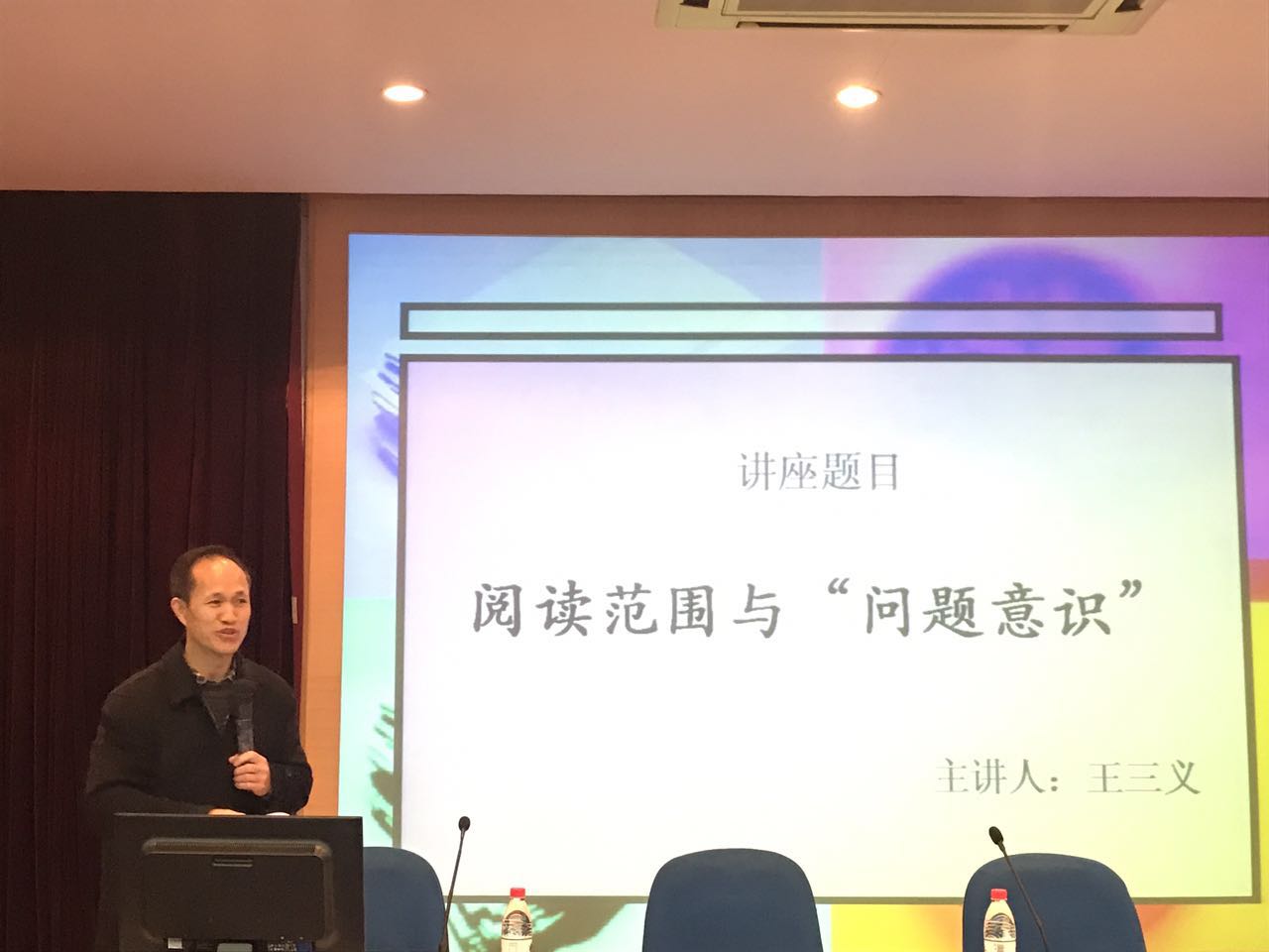 3月26日上午,澳门正规电子游戏平台文学院教授、博士生导师、中国世界近代史研究会理事、中国中东学会理事王三义教授做客澳门正规电子游戏平台"海星讲坛",为澳门正规电子游戏平台研究生做了题为"阅读范围与'问题意识'"的"泮池言学"报告。讲座由澳门正规电子游戏平台研究生辅导员马思涵老师主持,澳门正规电子游戏平台党委副书记曾桂娥副教授出席了本次讲座。