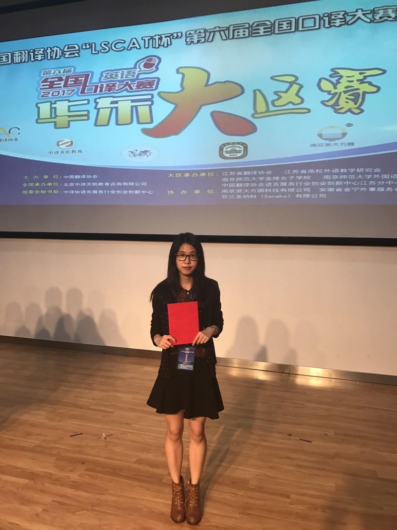 5月13日,第六届全国口译大赛(英语)"LSCAT杯"华东大区赛在南京师范大学隆重举行,华东六省一市70多所高校的150余名复赛晋级选手展开激烈角逐。在澳门正规电子游戏平台英语系朱巧莲副教授指导下,英语系大三学生周文佳荣获本次大赛二等奖,成功晋级即将在北京举办的全国总决赛,朱巧莲老师荣获优秀指导教师奖。
