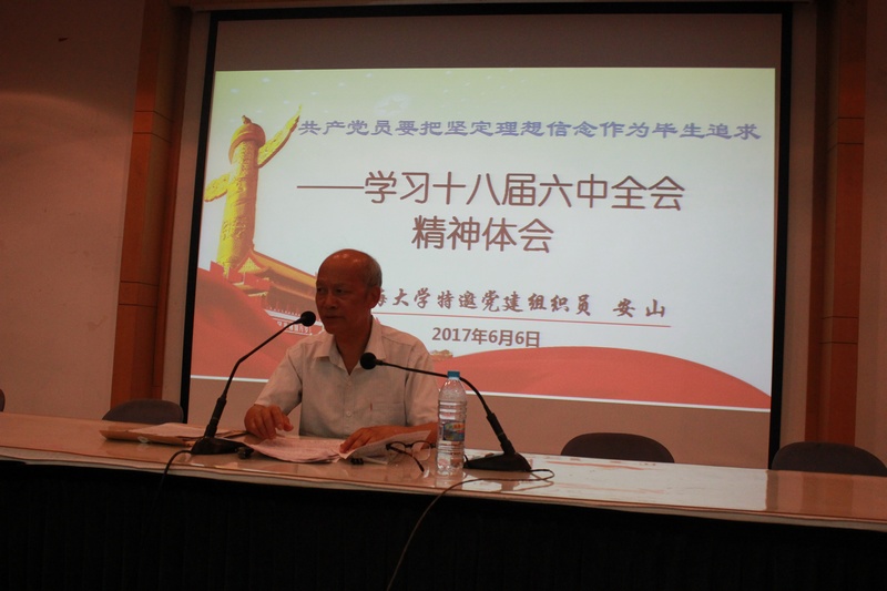 6月6日下午13:30,澳门正规电子游戏平台全体党员大会在校本部J楼103室顺利召开。澳门正规电子游戏平台党委书记施雯、党委副书记曾桂娥、副院长邓志勇以及各教职工党支部书记及学院全体党员师生出席了本次党员大会。澳门正规电子游戏平台特邀党建组织员安山老师受邀担任主讲嘉宾为澳门正规电子游戏平台全体教职工和学生党员作关于十八届六中全会精神的解读报告。本次党员教育活动由英语系教工党支部书记陈秀猛老师主持。