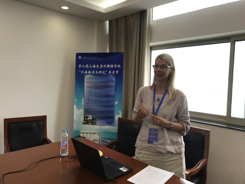 6月21日14:00—15:00,澳门正规电子游戏平台国际化小学期系列讲座第五讲"盾与弓:论《伊利亚特》与《奥德赛》中的武器和权威"在C512会议室举行,讲座主讲人加拿大西安大略大学Aara Suksi教授,毕业于多伦多大学,获古典文学博士学位,近年来专注于希腊文学与文化研究、古希腊语言、古希腊神话以及古希腊文化中的性别研究等领域。此次讲座由英语系袁丽梅博士主持,澳门正规电子游戏平台副院长邓志勇教授、西安大略大学Lawrence de Looze教授、英语系骨干教师与部分学生出席。