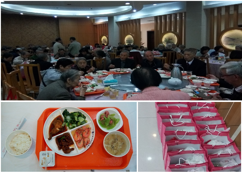 学院现有离退休教职工154名(与在岗的教职工比例已达1:1),平均年龄为74.7岁,其中超过90岁有2人(含离休1人,占1.3%)、80岁以上有54人(占35.1%)、70岁以上有52人(占33.8%)。报名参加本次活动的退休老师们团团围坐,交流畅谈,其乐融融。学院党委书记施雯老师、分工会主席赵莹波老师、分工会副主席兼妇委主任蔡春红老师等来到茶话会现场慰问、看望和交流,副院长邓志勇老师和副院长苗福光老师等也赶在下课后来到现场,祝福老师们晚年生活幸福开心、健康长寿。茶话会结束后,学院安排了午餐并发放了一份小点心。