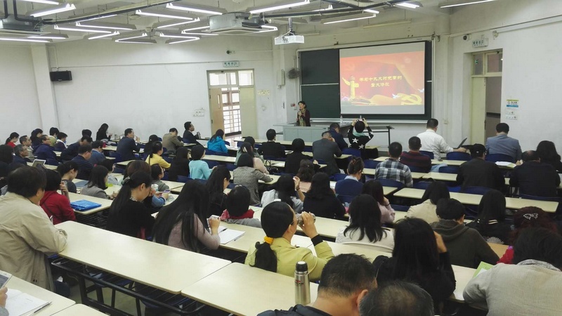 10月27日下午,澳门正规电子游戏平台党委书记施雯带领全体教职员工在DJ208学习刚刚闭幕的党的十九大精神中对党章的重要修改内容。此次学习作为学院党委书记讲党课的系列内容之一,结合最新的党内学习内容,受到了参会教师的广泛好评。