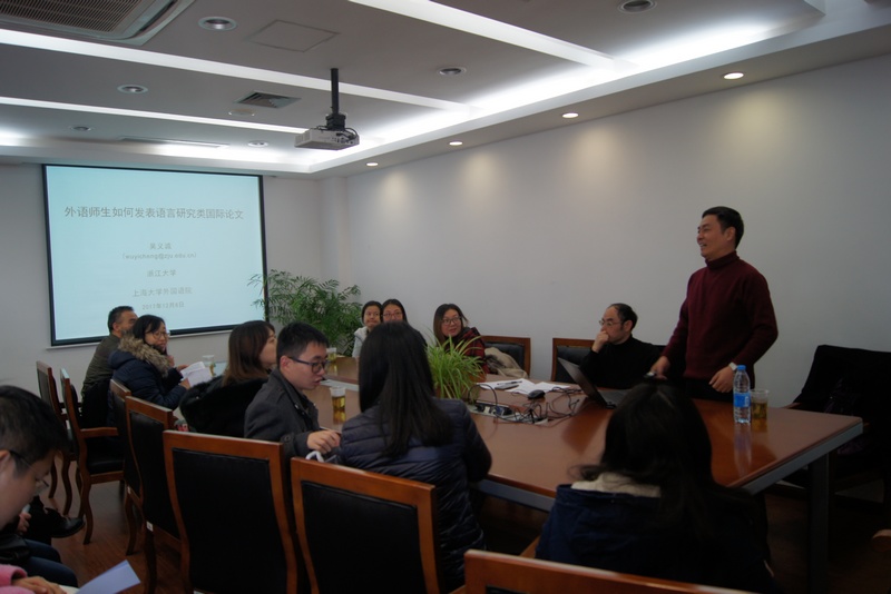 12月8日下午1:30,浙江大学外语学院博士生导师吴义诚教授应邀做客澳门正规电子游戏平台"语言文化与世界文明"系列讲坛(第十八讲),为澳门正规电子游戏平台师生做了题为"外语师生如何发表语言研究类国际论文"的精彩讲座,讲座由邓志勇副院长主持。