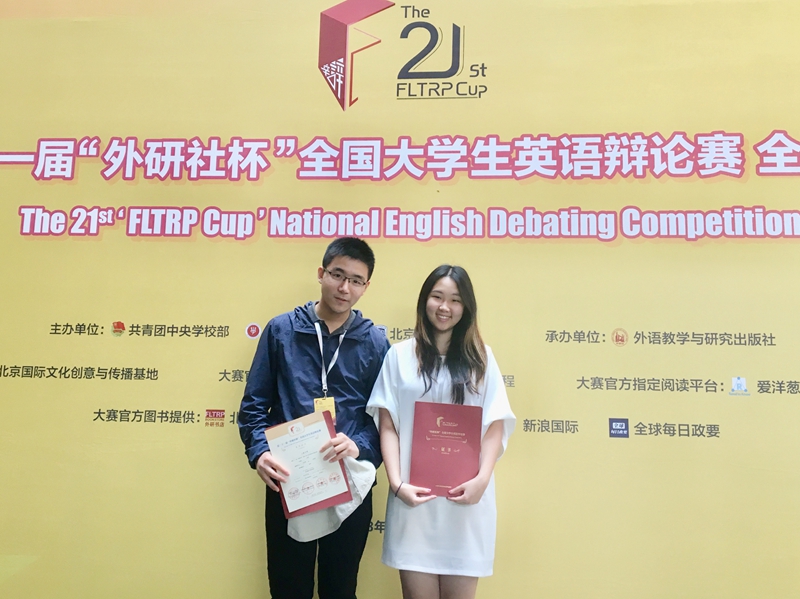 本次全国总决赛共由华东、华北、华南、华西赛区产生的117支代表队参加。我校选手钱闻臻和金智睿是澳门正规电子游戏平台"海星杯"英语辩论赛的冠军,他们平时积极练习英语辩论,在赛前还与英语辩论爱好者组建了英辩小队加强练习。在澳门正规电子游戏平台龚萍博士和白岸杨老师的指导下,他们参加了沪宁高校英语辩论联赛、"外研社杯"英语辩论华东赛区、沪港澳英语辩论交流赛等比赛。两位同学还自己付费去参加了上海国际英语辩论挑战赛SIDC、杭外英语辩论赛HFLS Winter BP、上海国际英语辩论公开赛SIDO等诸多赛事。