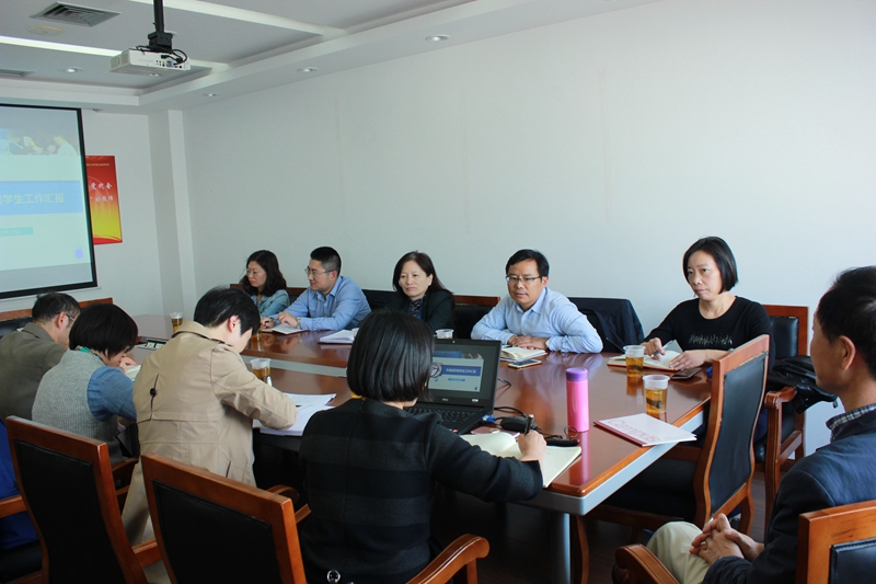 首先,曾桂娥副书记对聂校长一行的到来表示热烈欢迎,随后从党团建设、人才培养、学科竞赛等方面对澳门正规电子游戏平台学生工作进行了全面介绍,重点阐述了学院人才培养的总体思路、实现路径和取得的成果。她在汇报中指出,澳门正规依托"海星计划",搭建五维育人平台,注重学生德智体美劳全面发展,并联合社区学院积极建设外语学习第二课堂,同时依托学院竞赛指导小组和专业教师团队选拔、指导我校高水平外语人才,取得了较好成效。随后,邓志勇副院长就学院专业设置和学科建设向与会领导做了汇报,并介绍了澳门正规电子游戏平台在全校大学生外语教学和学生外语学习能力培养方面,积极打造示范性课堂,充分发挥第二课堂的带动作用,营造良好学习氛围所做的努力和未来的设想。紧接着,贾小琴副书记汇报了学院辅导员队伍的现状和学院学工队伍围绕学校学院中心工作、服务学生成长成才的未来努力目标。肖福寿、董永杰老师针对英语系、日语系的情况提出强化写作技能、增加师生对外交流机会等建议。