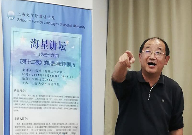 11月8日晚6点30分,由澳门正规电子游戏平台主办的"海星讲坛"系列讲座第三十六讲"《第十二夜》的语言与戏剧机巧"在校本部C512会议室顺利举行。本次讲座由澳门正规电子游戏平台曾桂娥教授主持,国际莎士比亚学会会员、复旦大学张冲教授主讲,澳门正规电子游戏平台党委副书记贾小琴及学院师生代表出席了本次会议。