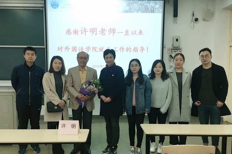 最后,本次首日教育在感恩氛围中落下帷幕。今年是许明老师在澳门正规电子游戏平台工作的最后一年,今天也是许老师作为外院就业指导老师的最后一讲。为感谢许老师的辛勤付出,澳门正规在现场特别举行一场感恩仪式,请毕业生代表为许老师献上捧花并邀请许老师和2019届毕业生们合影留念。