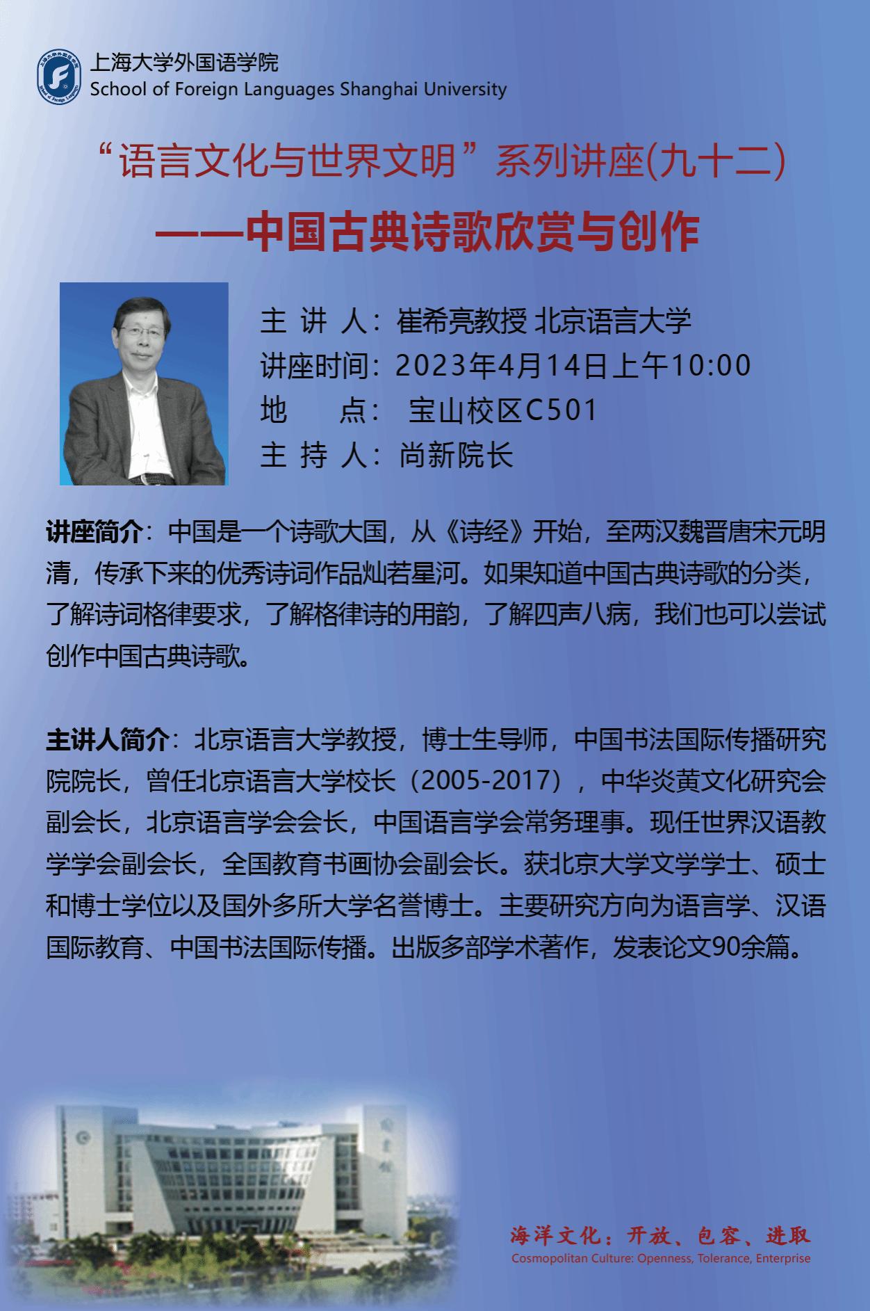 “语言文化与世界文明“系列讲座(九十二)中国古典诗歌欣赏与创作