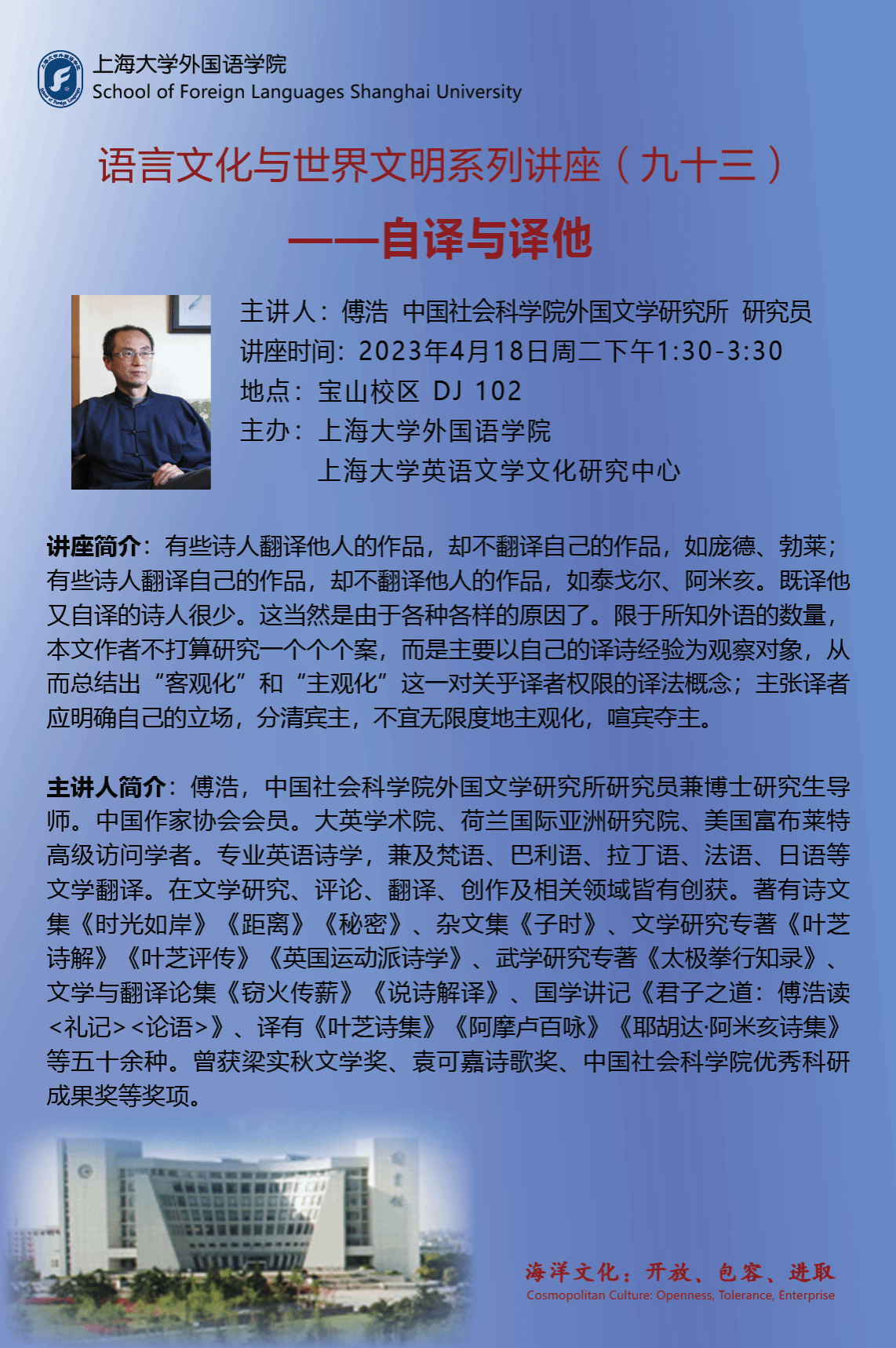 “语言文化与世界文明”系列讲座(九十三)自译与译他