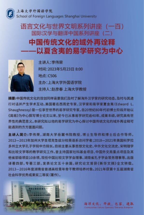 “语言文化与世界文明”系列讲座(一百)中国传统文化的域外再阐释——以夏含夷的易学研究为中心