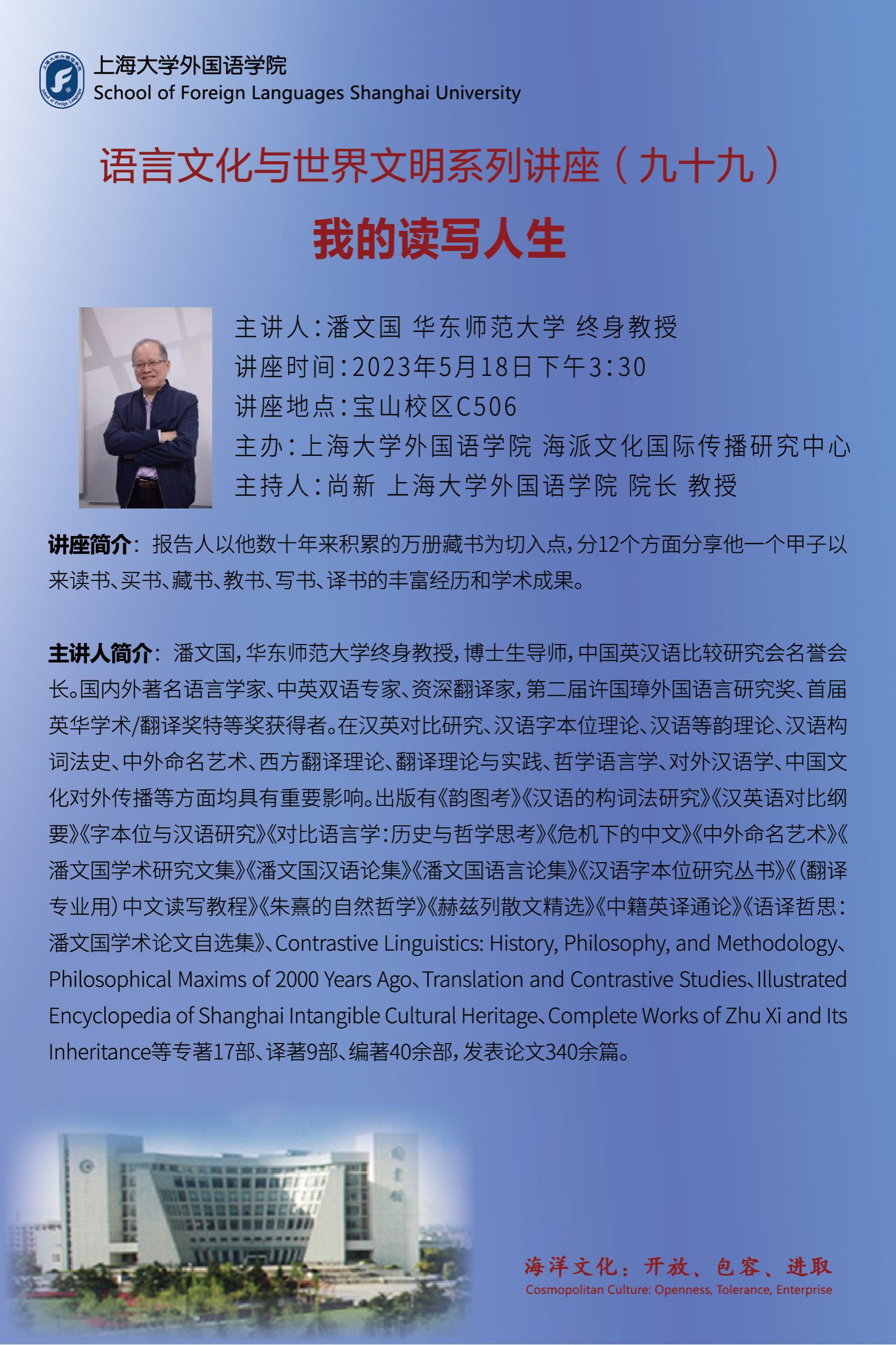 “语言文化与世界文明”系列讲座(九十九)我的读写人生