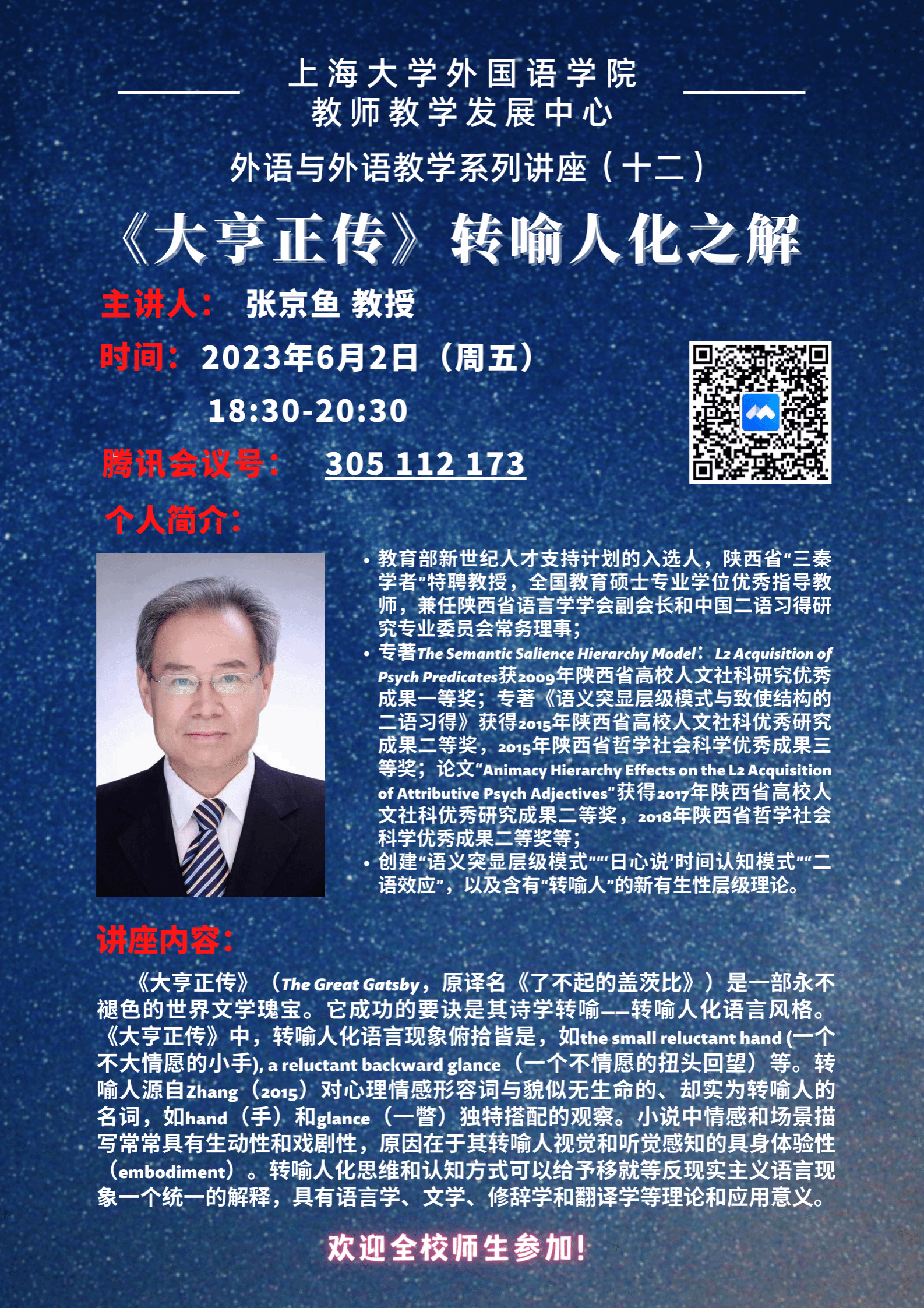 澳门正规电子游戏平台教师教学发展中心讲座(十二)《大亨正传》转喻人化之解