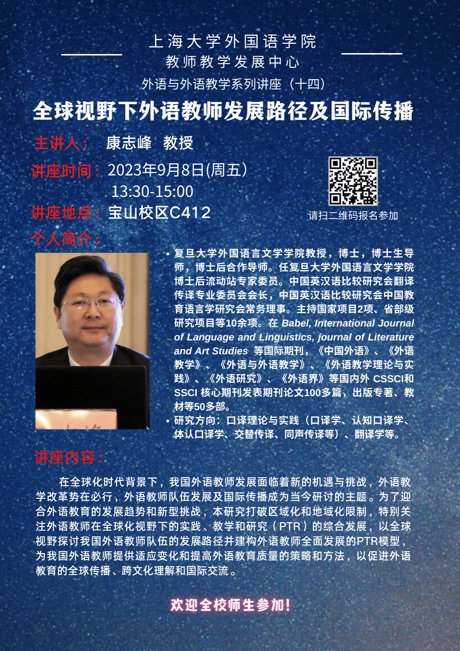 澳门正规电子游戏平台教师教学发展中心讲座(十四)全球视野下外语教师发展路径及国际传播