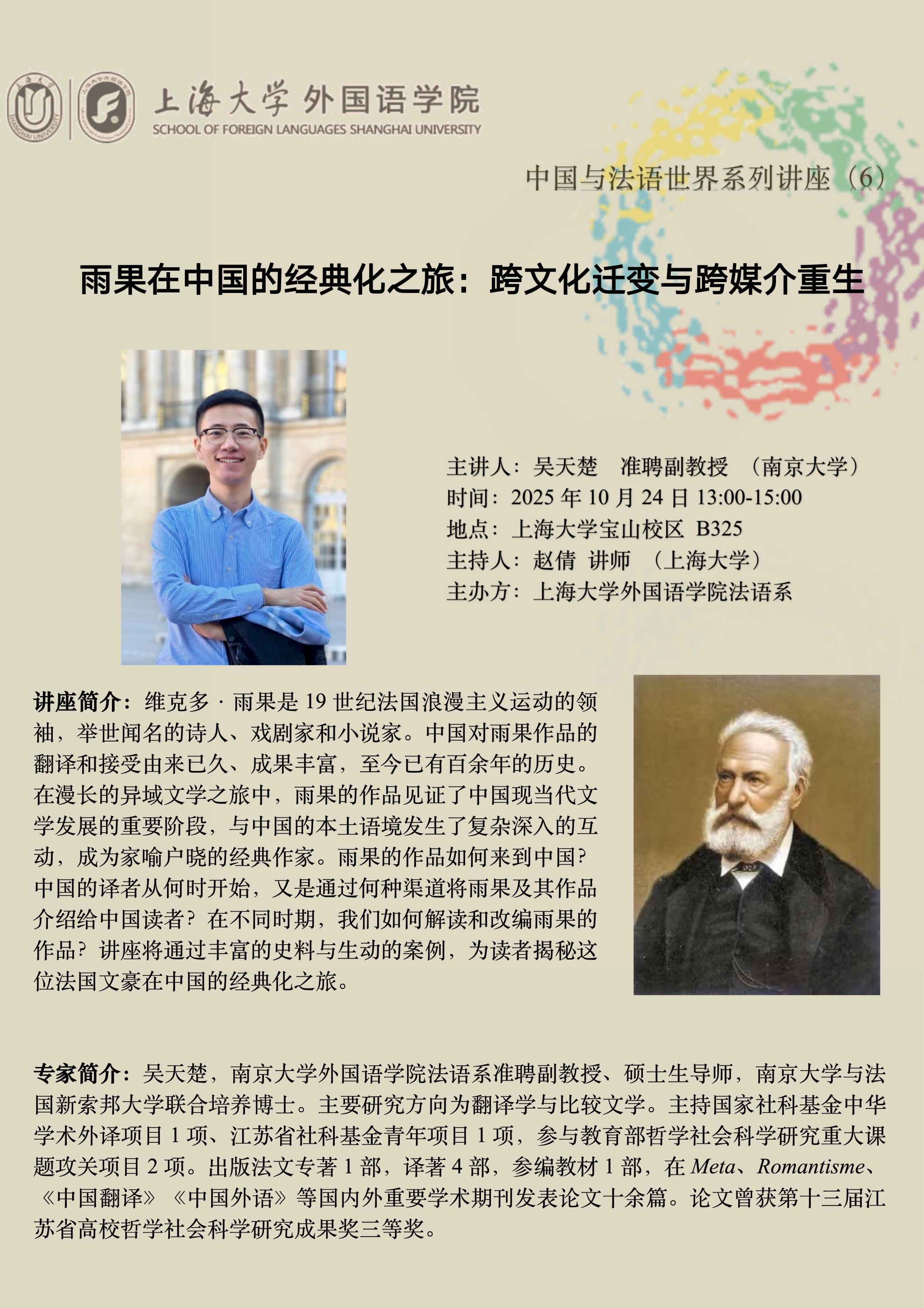 中国与法语世界系列讲座(6):⾬果在中国的经典化之旅:跨⽂化迁变与跨媒介重⽣