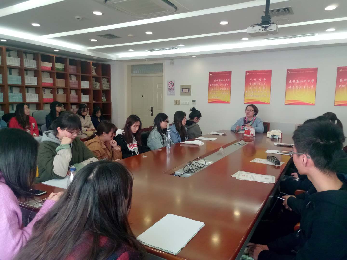 首先,8名积极分子同学依次宣读了各自的思想汇报,针对自身的入党动机、对标党员的差距、学习情况、参与志愿服务等方面进行了阐释。随后,每位党员同学也给出了意见和建议,支部书记朱老师希望积极分子同学今后要继续加强理论学习、不断端正入党动机、日常对标党员言行、积极主动服务同学。此后其次,各位党员一起交流了自寒假以来通过“学习强国APP”获得的一些学习体会,各位党员纷纷表示“学习强国”为党员群众提供了一个理论学习的权威知识平台,能在第一时间了解党和国家的时政要闻、习近平总书记的新时代思想、世界各地新闻事件,以及学习中国优秀文化。大家学习热情高涨,每个人都有自己喜欢的学习板块,交流氛围热烈。