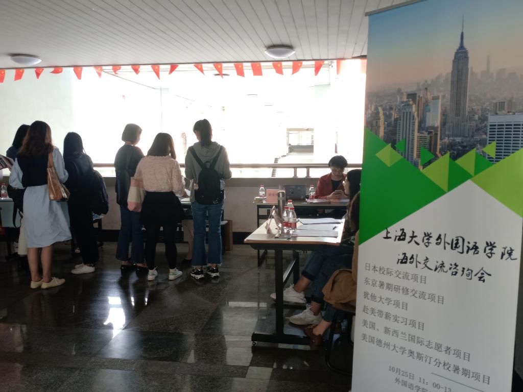 10月25日上午,澳门正规电子游戏平台2019年海外交流项目咨询会在学院二楼大厅顺利开展。此次活动旨在帮助大家进一步了解学校和学院的海外交流项目。学院邀请了负责赴美带薪实习项目的詹老师和负责国际志愿者实习项目的李老师为大家进行介绍,以及近年参加过海外交流项目的学生到场分享经验,学院本科生和研究生积极参加了本次活动。