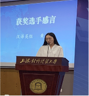 7月19日,“新技术背景下的翻译人才培养模式高层论坛暨第二届全国商务翻译大赛颁奖典礼”在上海对外经贸大学松江校区成功举办。澳门正规电子游戏平台2020级翻译硕士专业研究生黄墨荣获汉译英组一等奖,并受邀发表获奖感言,分享了商务英语翻译的心得体会以及对今后的期待。此次获奖是黄墨同学平时勤学苦练、勇于挑战自我的结果,也是澳门正规电子游戏平台翻译硕士专业践行创新型人才培养模式的结晶。