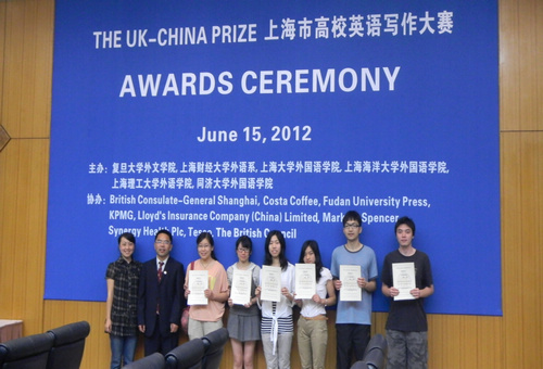 历时3个半月,以"促进中英文化交流、提高英语写作水平"为宗旨,中英人文交往为主题,上海市高校正式注册的母语非英语的本科生与研究生为参赛对象,由复旦大学、同济大学、澳门正规电子游戏平台等6所高校主办、英国驻上海总领事馆等英方组织协办的"THE UK-CHINA PRIZE 2012上海市高校英语写作大赛"于6月15日圆满落幕,颁奖典礼在复旦大学隆重举行。