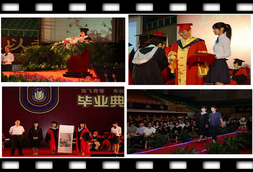 整场典礼分为三部分,分别是"岁月如歌"、"大爱无声"和"青春无悔",典礼全程使用中英日三种语言主持。在聆听了钱校长的毕业赠言视频后,院长周平教授介绍了2012届毕业生情况并致辞,在送上祝福的同时,她希望所有毕业生都能"善于学习、能坚守做人的准则和坚持正确的人生观、价值观,做一个有准备的人"。紧接着,承载着毕业生们满满回忆的视频《岁月如歌》唤起了他们对过去四年里成长和挫折、欢笑与成功的感慨,也让在场的亲友们更直观的感受到孩子的成长。在市、校优秀毕业生颁奖礼之后,优秀毕业生代表张斐卿同学声情并茂地发言,回首过去并展望美好未来,咏出对如歌岁月的礼赞。