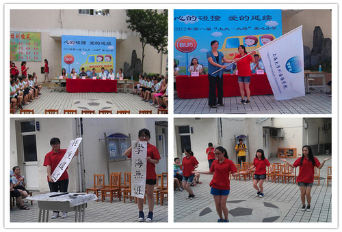 才艺表演过后,申华小学的学生代表周梦圆上台发言,她用稚嫩的声音道出了孩子们对大学生哥哥姐姐们的喜爱和感恩。大学生志愿者代表姜洁也做了简短发言,参加暑期爱心小学是一件有意义的事,不管是参与教学的大学生老师还是可爱的小朋友都将收获许多知识、友谊和热情。志愿者代表戴琰从孙兰老师手中接过了志愿者服务的旗帜,意味着爱心之旅的接力棒传递到了今年这一批志愿者手中。最后,澳门正规电子游戏平台党委副书记王国建老师发言表达了自己对本次活动的殷切希望和寄语。
