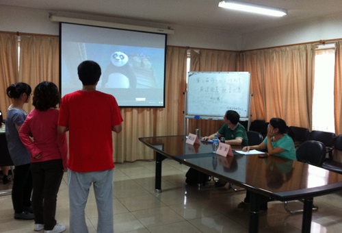9月20日下午五点,"魅力双影"英语电影配音大赛初赛在C五楼会议室顺利举行。来自各个学院的20多支队伍踊跃参与,初赛评委由澳门正规电子游戏平台英语系专业教师担任。