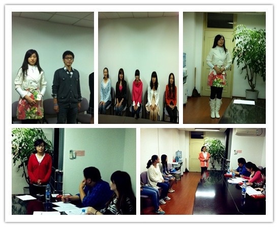 10月26日和28日晚,外语礼仪队招新面试在C楼三楼会议室顺利举行。面试采用5人一组的群体面试形式,一共分为三个环节,分别是英语介绍演讲、微笑展示和评委点评。面试中,许多同学用流利的英语进行自我介绍、家乡介绍等等,自信地回答评委的提问,以优雅的坐姿、端正的站姿和迷人的微笑赢得了评委们的青睐。之后评委对每一个同学进行耐心点评,并对他们的表现提出建议,引导同学们今后更注重自身形体仪态,全面提高个人形象。经过选拔,最终有50名英语水平较高且形体姿态优雅的同学从中脱颖而出。