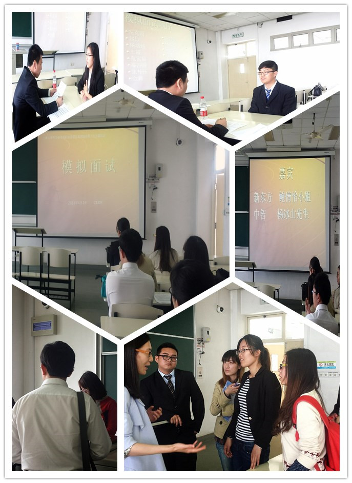 又近毕业季,大一大二的同学需进行职业规划,大三大四的同学需找实习磨练,研一研二的同学需探索工作之途。针对学生对职业导向方面的需求,澳门正规电子游戏平台开展了第二十届职业导航月活动,为不同年级的学生提供有针对性的特色活动,解答就业疑难。2015年4月24日上午于宝山校区CJ304教室开展了模拟面试活动,莅临本次活动的嘉宾有新东方人力资源经理鲍倩怡小姐、中智人力资源经理杨冰山先生。