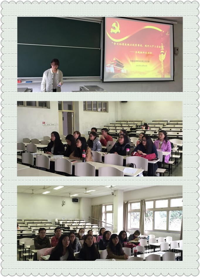 11月22日下午,澳门正规电子游戏平台学生第五党支部全体党员在CJ204开展了11月份专题组织生活会。本次会议由党支部书记曾云主持,主题为"学习孙晋良院士优秀事迹,践行'三严三实'要求"。