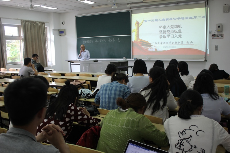 为了进一步加强对入党积极分子的培养和教育,提高入党积极分子的理论水平,确保新党员的发展质量,5月19日中午12:00,澳门正规电子游戏平台特邀党建组织员安山老师以"坚定入党动机、坚持党员标准、争取早日入党"为主题,在校本部AJ103为入党积极分子讲了一堂意义深刻的党课,这也是澳门正规和法学院联合举办的第十三期入党积极分子培训班的第二讲。党课由澳门正规电子游戏平台党建负责老师梁苗主持,澳门正规电子游戏平台和法学院全体入党积极分子参加了本次教育活动。