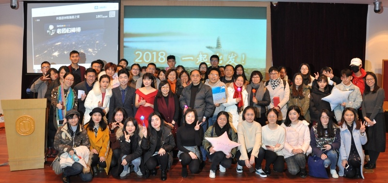 1月4日晚18:30,澳门正规电子游戏平台"海星之夜"颁奖典礼暨2017-2018跨年晚会在澳门正规电子游戏平台宝山校区J202方润华讲堂圆满落幕!澳门正规电子游戏平台副院长邓志勇教授,副院长苗福光教授,党委副书记曾桂娥教授,英语系系主任肖福寿教授,日语系系主任董永杰副教授,英语系副系主任黄欣副教授、朱音尔副教授,日语系副系主任张秀敏副教授、李晓光副教授,英语系党总支书记陈秀猛老师,英语系庄恩平教授,龚萍博士以及学院辅导员与学院本科生、研究生共同出席此次典礼和晚会。当夜,歌声飞扬,舞姿曼妙;当夜,欢声阵阵,笑语晏晏;当夜,众"星"云集,共享青春信念。