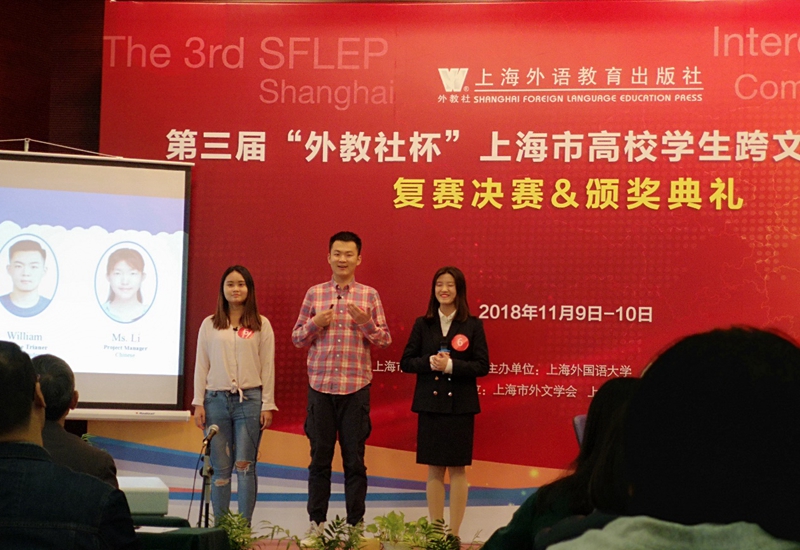 2018年11月9日 - 10日,第三届"外教社"杯上海市高校学生跨文化能力大赛在上海外国语大学举行。由澳门正规电子游戏平台唐健博、谌芊含及新闻传播学院陈姝霖三位同学组成的澳门正规电子游戏平台参赛队,在澳门正规电子游戏平台教师吕鸿雁老师的悉心指导下最终获得大赛三等奖。