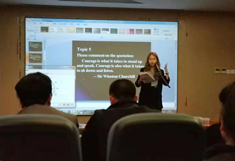 演讲比赛总共分为三个部分,主题演讲、即兴演讲和现场提问。各位选手在主题演讲环节各抒己见,而金智睿同学则通过自己的亲身经历,将性别歧视放置于当今的时代背景下,探讨了如今的社会热点话题。在即兴演讲和问答环节,金智睿同学在勇敢的表现是积极发表观点还是沉默中听取意见这一问题上谈了自己独到的看法。在整个比赛过程中,金智睿同学从容不迫,应对自如,向观众展示了其广阔的知识面与优秀的临场应变能力,受到了观众以及评委老师的一致好评。