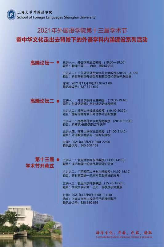 2021年澳门正规电子游戏平台第十三届学术节 暨中华文化走出去背景下的外语学科内涵建设系列活动