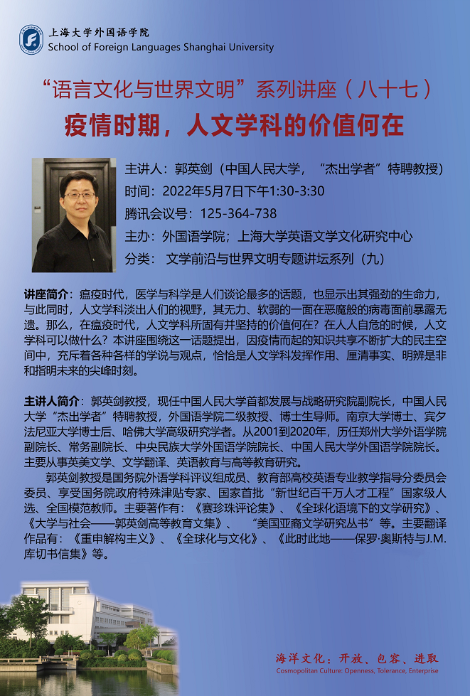 语言文化与世界文明系列讲座(八十七)疫情时期,人文学科的价值何在