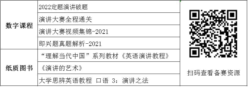 为帮助选手们更好地备赛,大赛组委会在U等生APP“外研社·国才杯”板块推出系列备赛课程,邀请知名演讲专家与往届优秀选手指点方法、分享经验;同时,依据大赛考查能力要求,组委会精心甄选备赛推荐书目,敬请关注。